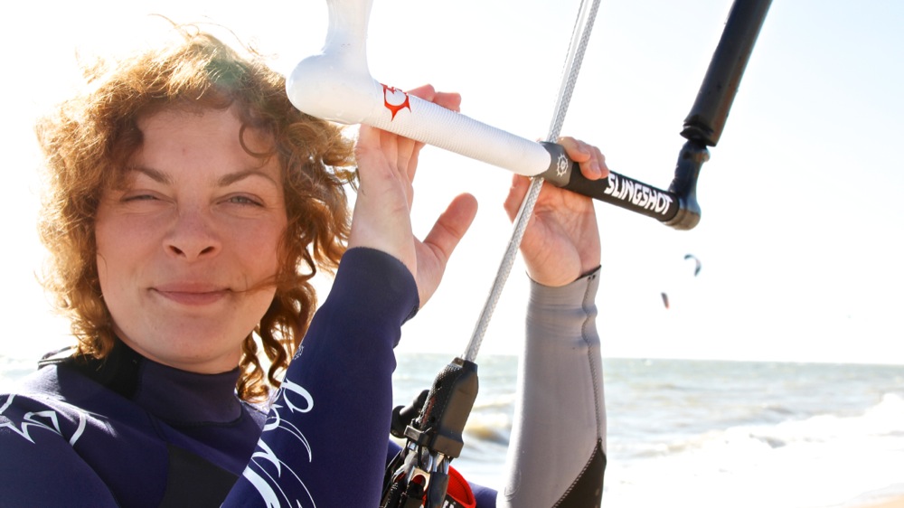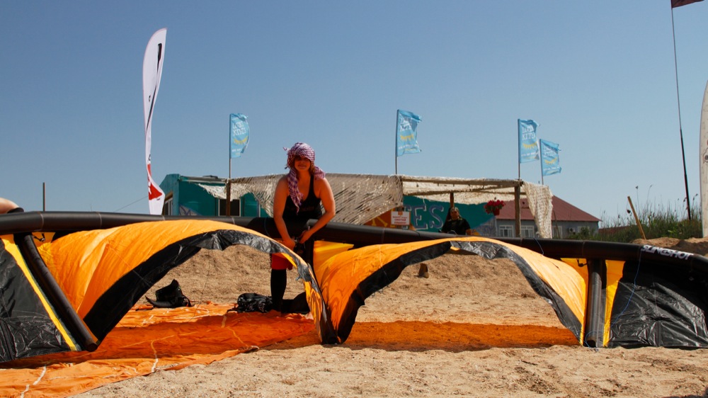 я в ноздрю» около получаса, я опять захотела тишины и покоя, и уехав всем за спины, покаталась еще немного в гордом одиночестве, прислушиваясь к ветру, и себе. Хорошая, стабильна тяга это у Slingshot семейное, так что возвращение к берегу у меня не отняло лишних сил. День можно было бы считать идеальным, если б в конце моего пути какой то бешеный виндсерфер нарушив все мыслимые, и немыслимые правила расхождения, не зацепил парусом мою стропу, и как и ожидалось, я сделав нечто вроде дайнлупа офборд, и словив воду лицом на достаточно хорошей скорости таки остановилась, и сразу стала проверять стропы – так как звук удара об парус был прямо скажем не очень приятный. Кайтик уже сам послушно встал на ухо, но меня беспокоила последняя стропа, которую из за чопа не было видно. Сердце неприятно екнуло, но всего лишь на секунду, качество строп и на этот раз не подвело. Говоря откровенно таких крепких и хороших строп я не видела ни у одного производителя. Один их вид