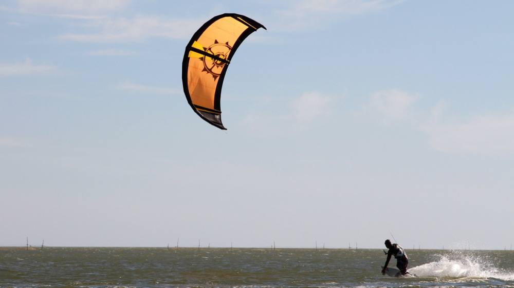 ПЛЮС- имея длинный ход планки кайт идеально (именно идеально) отрабатывает все порывы, когда идет провал ветра –мах кайтом и кайт набирает плавно скорость, идет порыв-планку от себя и ты спокойно без рывков продолжаешь в том же ритме движение…для меня это было очень важно-потому что катаясь на серфборде без петель, любые порывы заставляют тебя не комфортно чествовать на доске-а тут-все ровно!