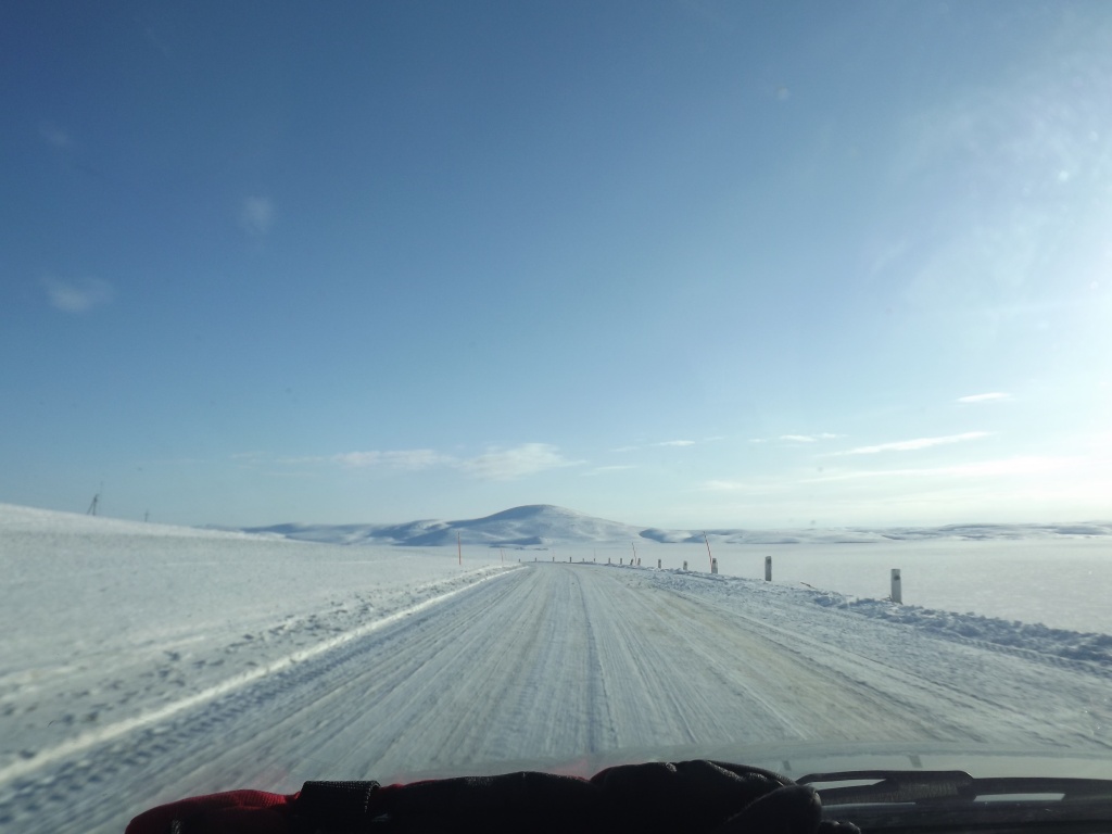 В предпоследний день нам не повезло с погодой – был день <<летающих собак>>, сильный ветер, пурга и снежные заряды с видимостью не более 20 метров…Думали не выберемся, но узнали, что с утра идет ШНЕК (РОТОР), который чистит дорогу…
