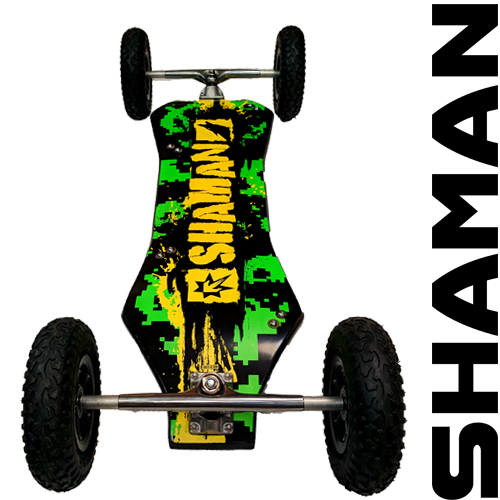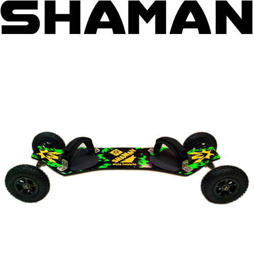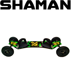 - Маунтинбордическая дека ShamanBuster WoodCore - сверхгибкая рестайлинговая многослойная композитная дека. Доска изготавливается из клееного кленового шпона, 90 см в длинну.- Маунтинбордические траки (подвески) ShamanFireTrack 12 mm: