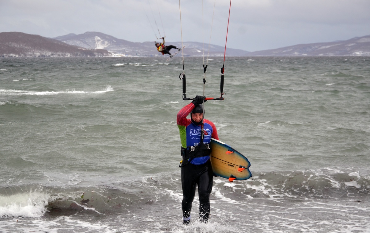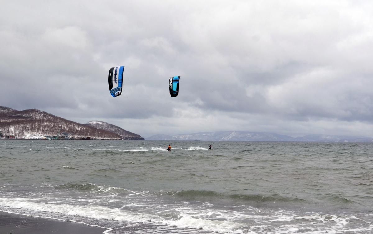 Или просто настоящий кайтинг по камчатски.6 ноября 2016, город Вилючинск, бухта Крашенинникова и озеро Зеркальное, температура воздуха и воды +2 градуса, снег. В преддверии мощного тихоокеанского циклона.