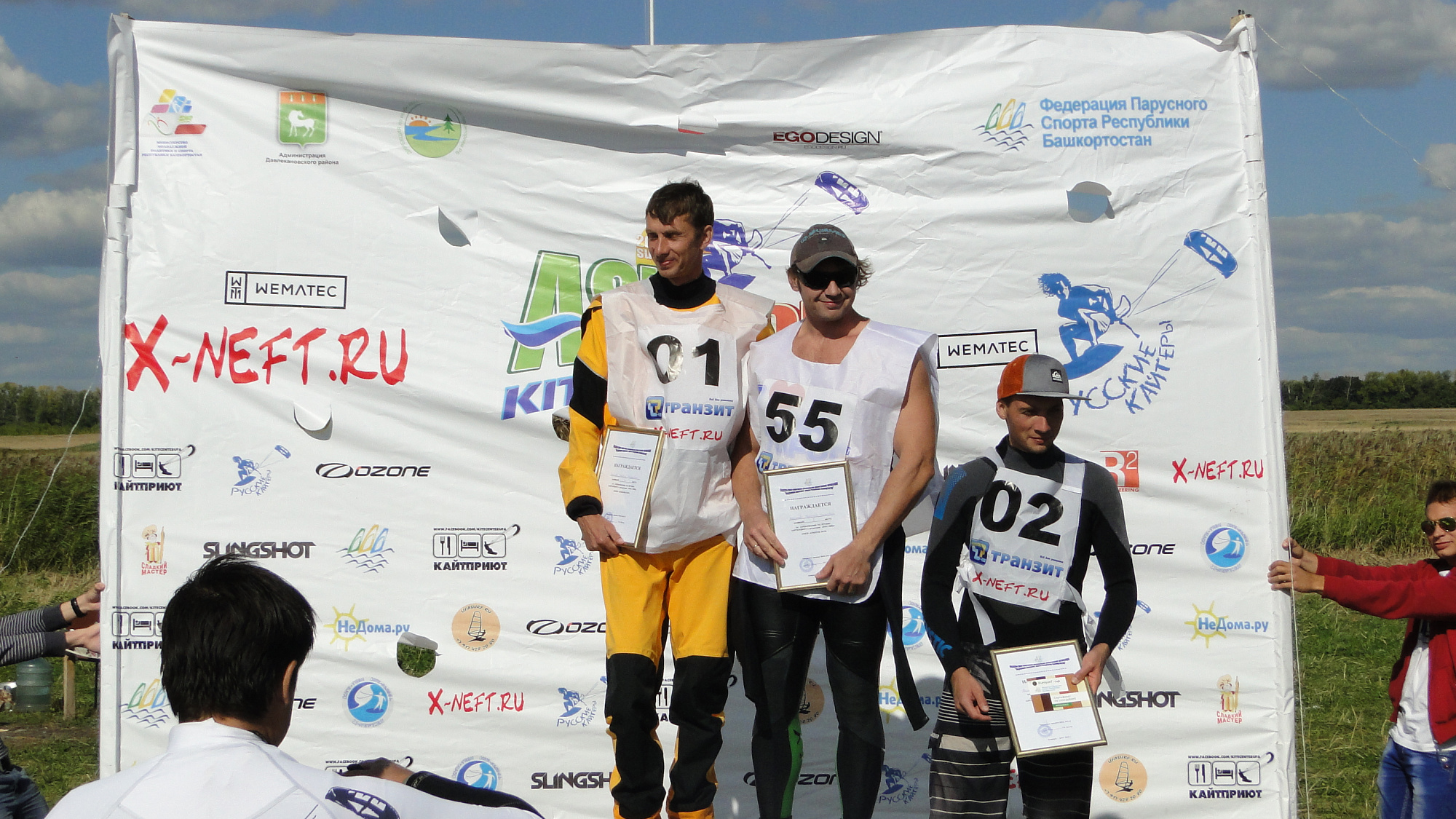 Для этого были привлечены одни из топовых производителей кайт оборудования Ozone и Slingshot. Спасибо им огромное. Ими были предоставлены флаги для украшения зоны соревнований.