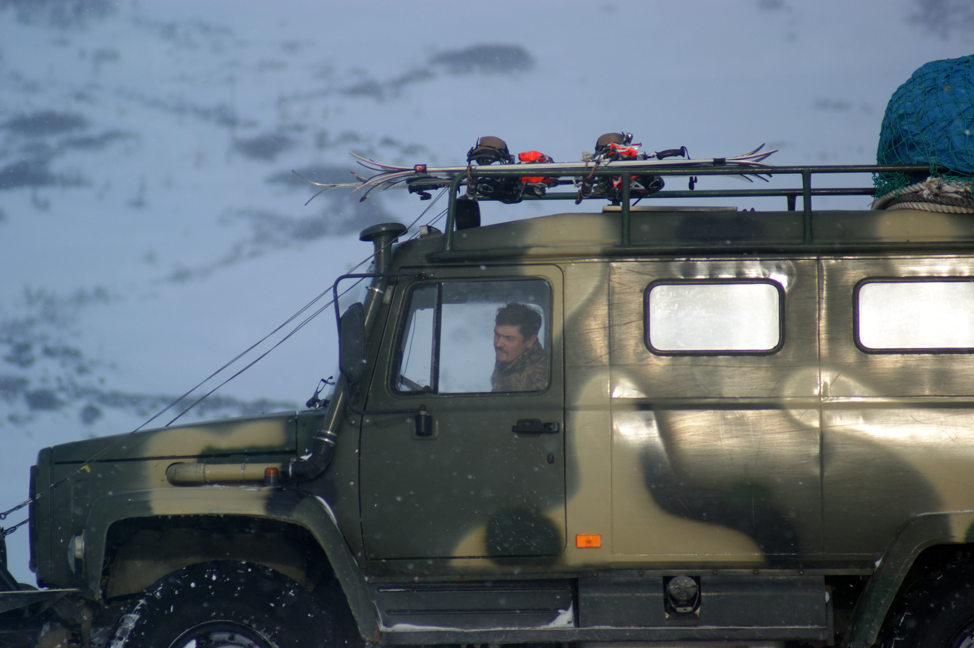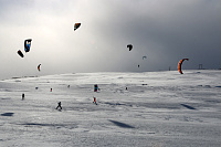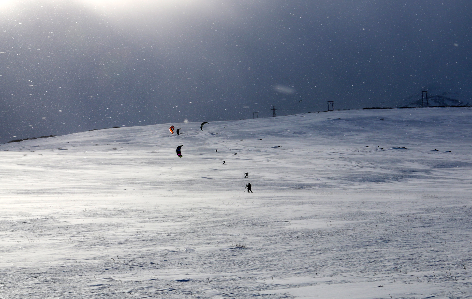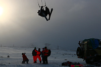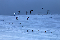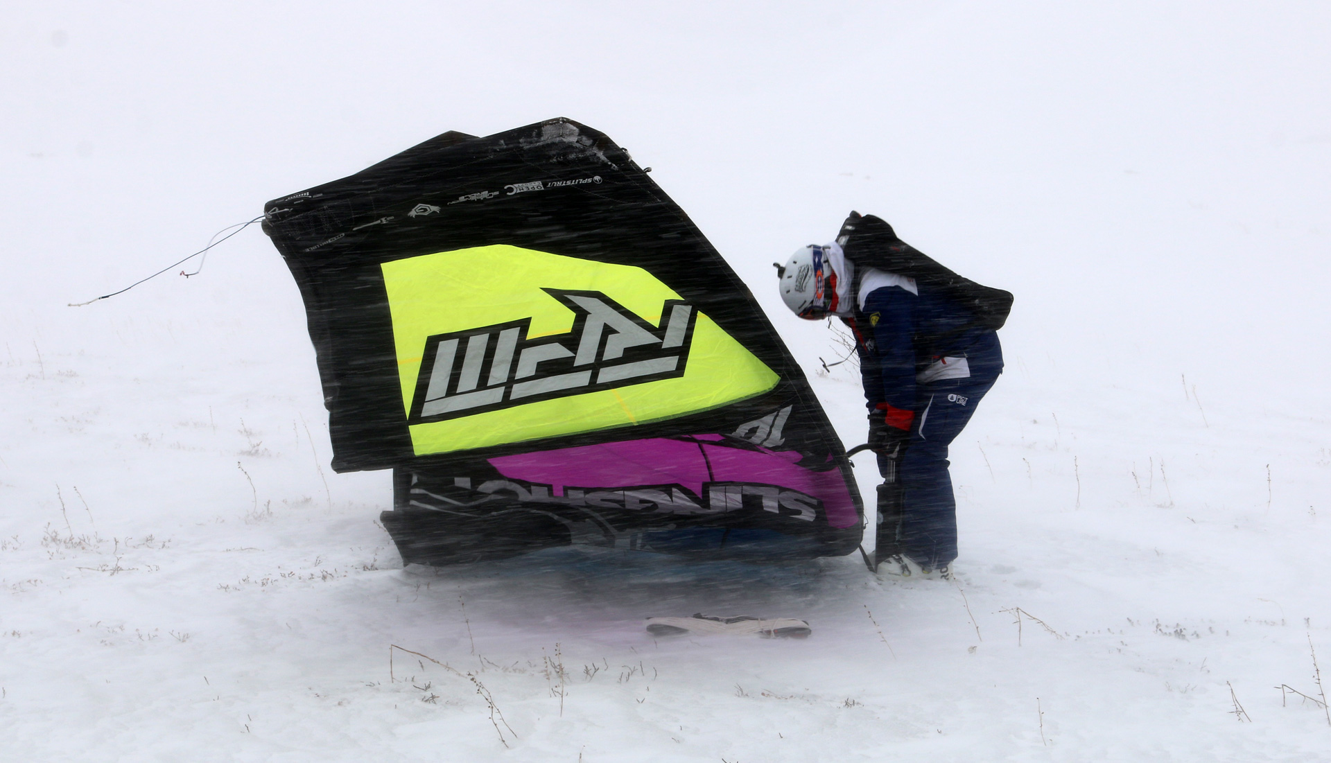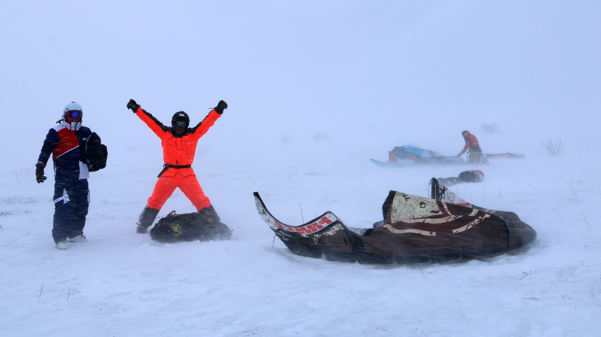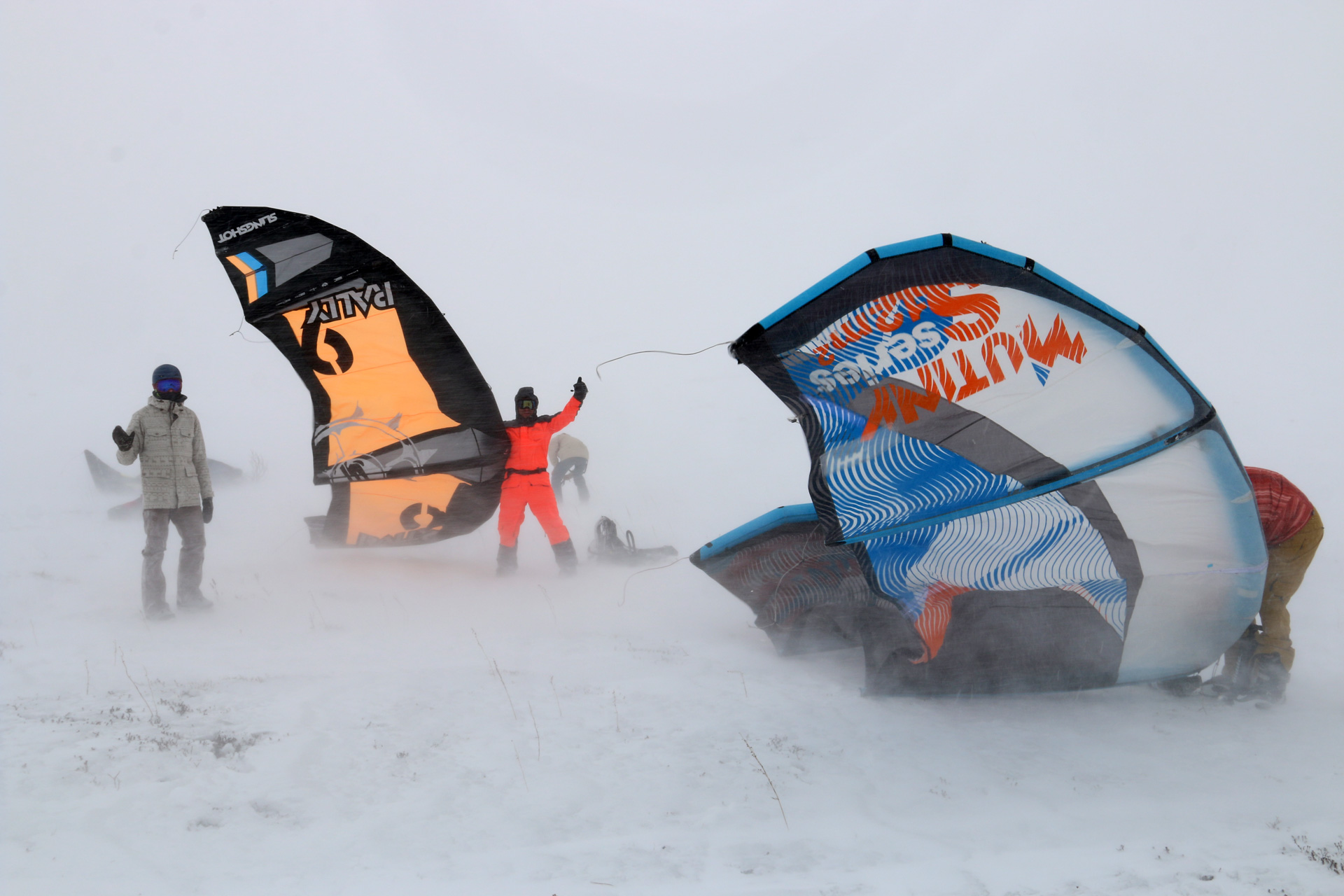 Место: Камчатка, Вилючинский перевал - плато, высота 1000 м, ветер 10-15 м/с, максимальные порывы с зарядами снега 23,7 м/с. Время в пути до кайтспота от г. Вилючинска 2 ч. 20 мин.