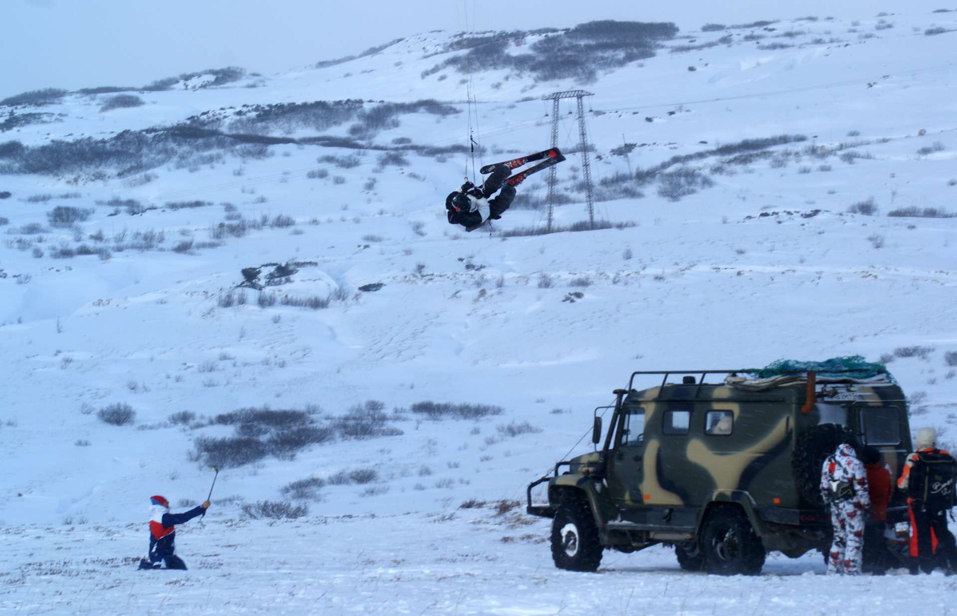"Как камчатские кайтеры открыли зимний сезон, или сразу в горы, на сумашедший рельеф".