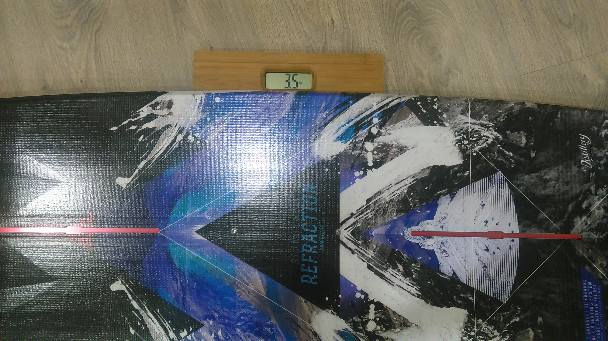 Доска пришла быстро, не было долгого томления, в ожидании покупки, так знакомого кайтерам). Принялся за визуальный осмотр. Визуально разница в длине досок в 2 см особо не чувствовалась, был сразу заметен больший рокер на новой доске. Изначально волновала разница в весе, решил взвесить доски с навесом и без навеса, в качестве навеса выступали боты Rad от Слингшот и плавники, кстати в комплекте с Refraction они маленькие, чисто вейковые по 2см, но это меня не смущало, так как на Ассайлум я катался тоже с маленькими