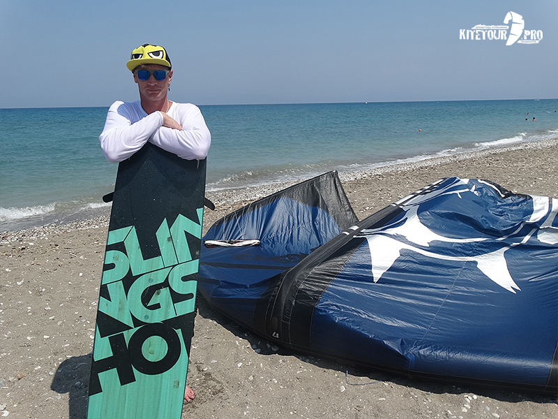 На кайт лагерь на Родосе kitetour.pro привезли много разных размеров и форм кайтов, но самым запоминающимся из них был 17 метровый кайт Slingshot Turbina 2015 года.