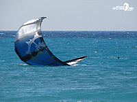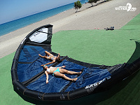 Это огромная дельта-си с невероятными характеристиками, очень хорошей управляемостью и небольшой нагрузкой на планке. Летать этот кайт начинает с 5 узлов, а тянет уже с 7 узлов, не метров обратите внимания, а самых что не наесть, узлов.
