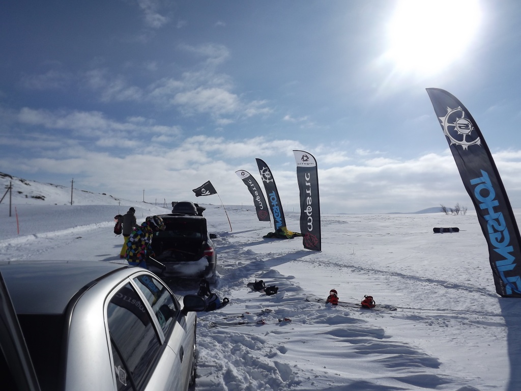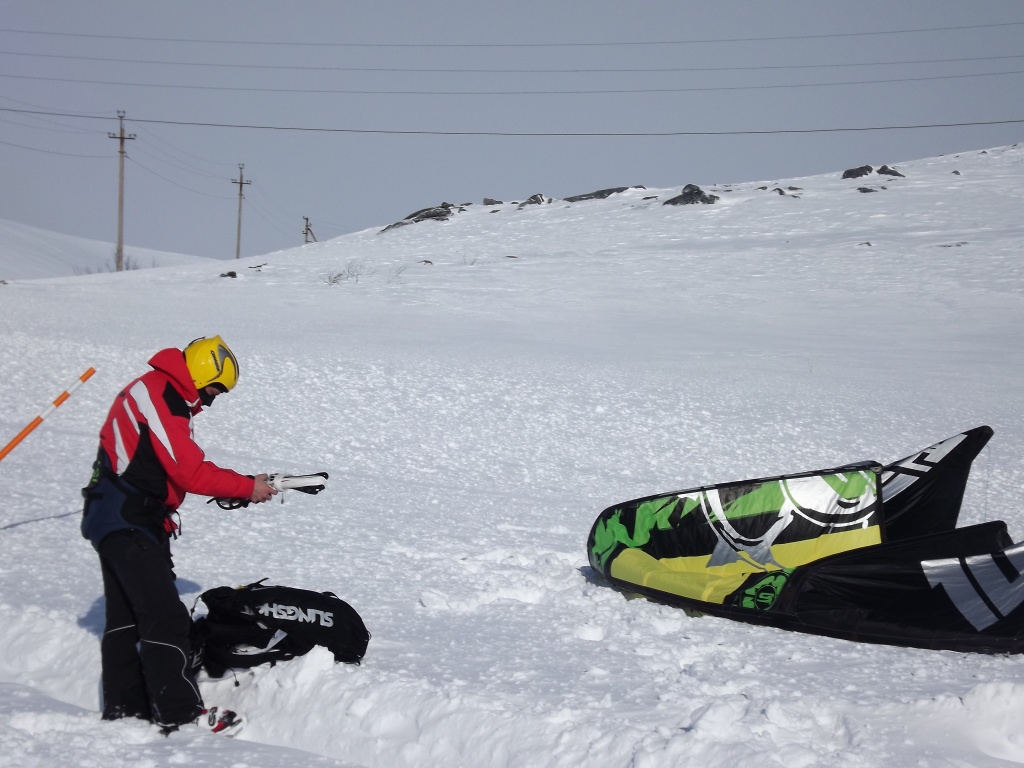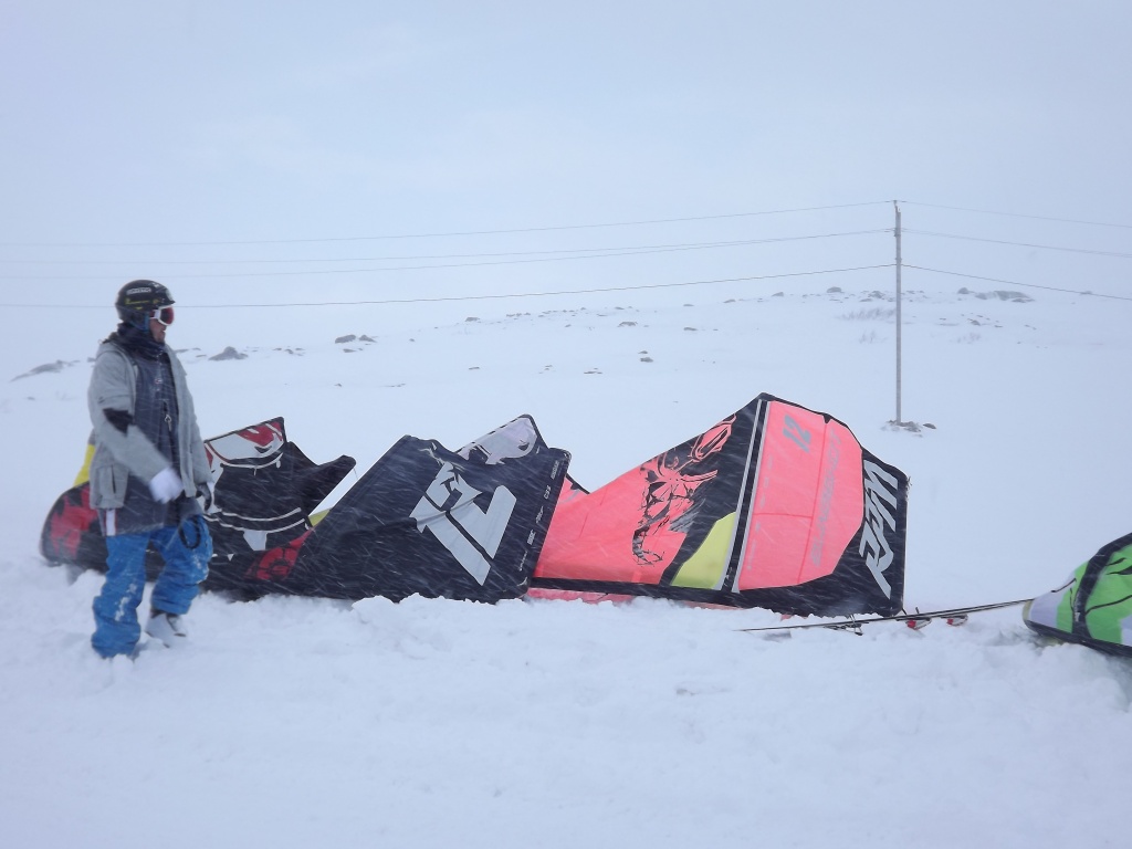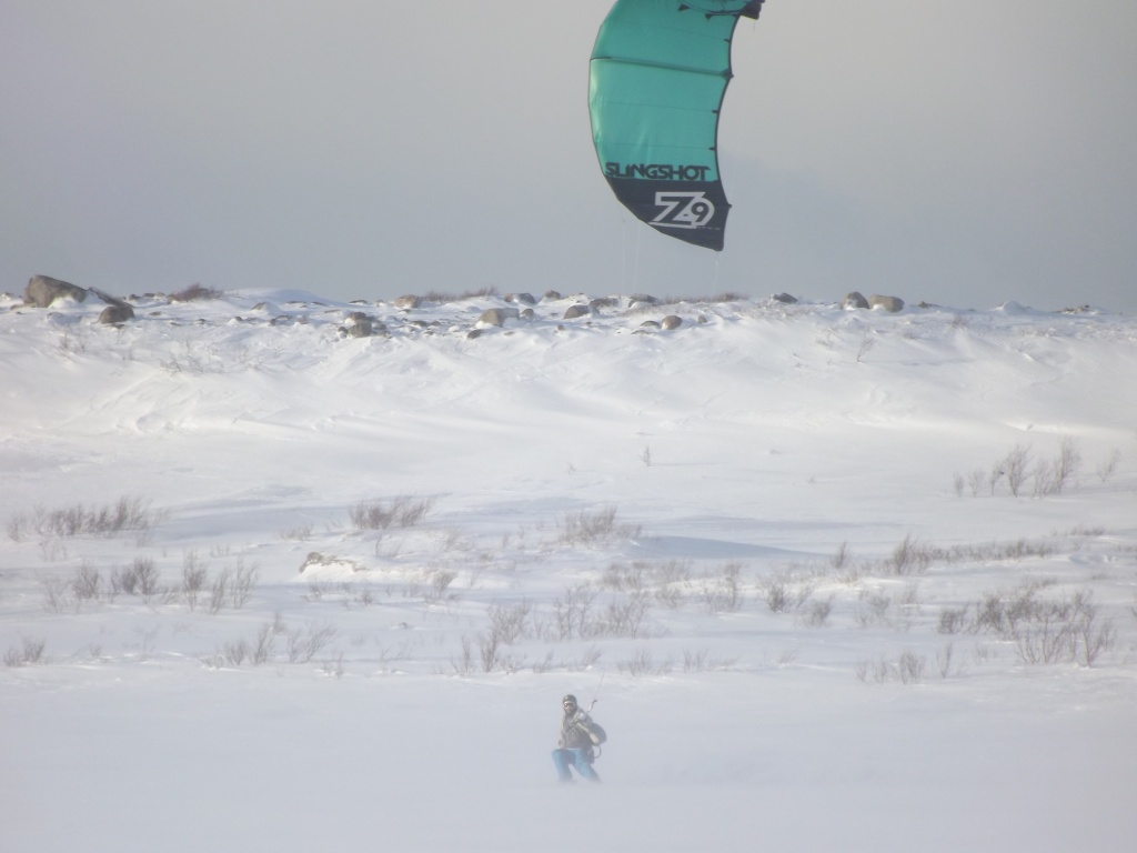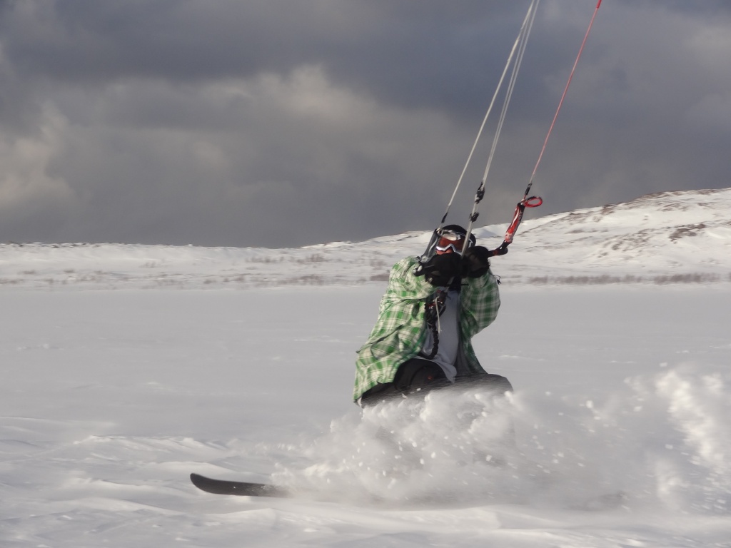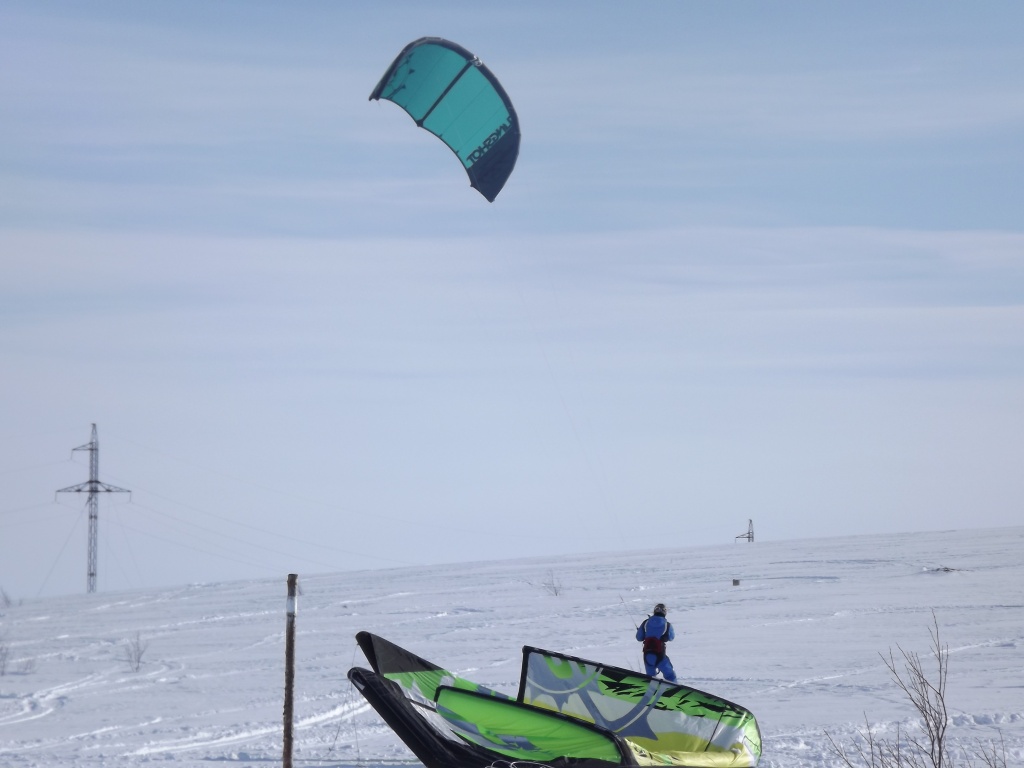 В тундру добрались к 13.00 и сразу, не заезжая в деревню, решили вкатить, да и мурманские локалы были на споте… Ветер был достаточно сильный, порывистый и иногда приходили снежные заряды, в которых видимость падала до десятков метров…однако это не помешало немного раскататься, по прыгать транзишены и поелозить по сопочкам и склону Эривейва (гора с превышением чуть более 300 метров)… Подтягивались и те, кто выехал чуть позже…вот и наступило наше любимое время : <<EAT.SLEEP.KITE>>